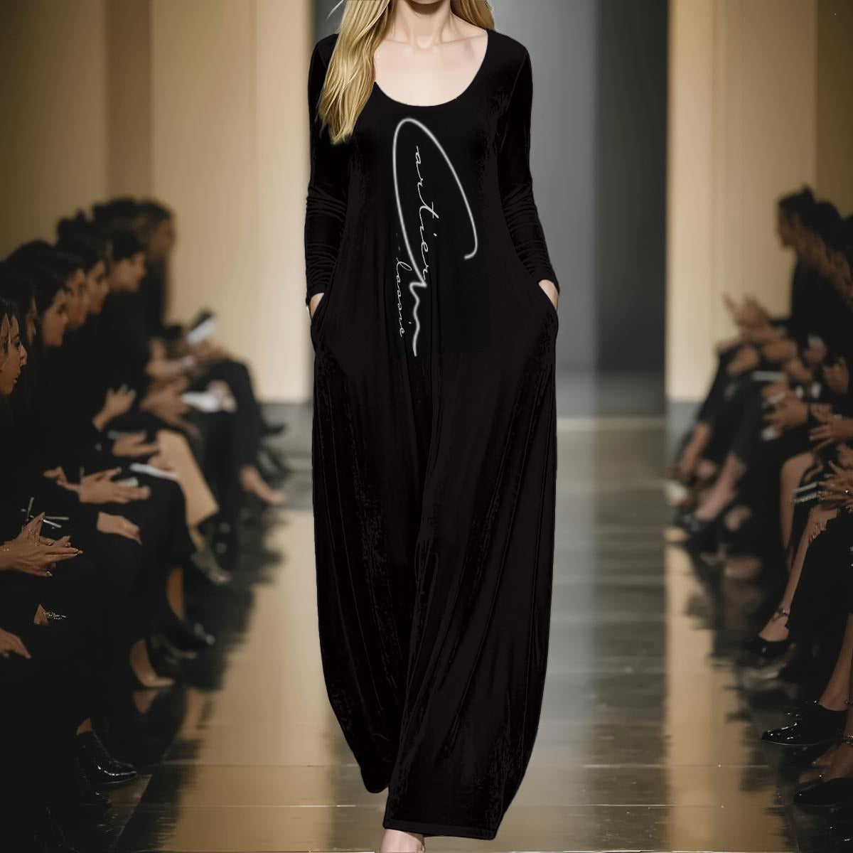 This long-sleeve maxi dress is crafted from premium short-pile velvet with a subtle, elegant sheen. The soft, silky texture feels luxurious against the skin, while the fitted silhouette highlights feminine curves. Designed with a scoop neckline and smooth drape, it’s perfect for evening events, parties, or any special occasion that calls for timeless sophistication.