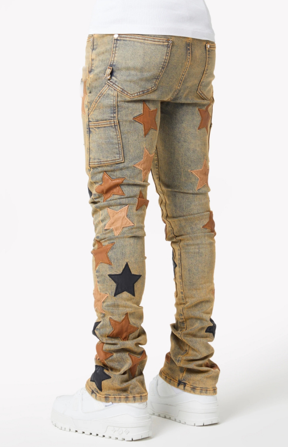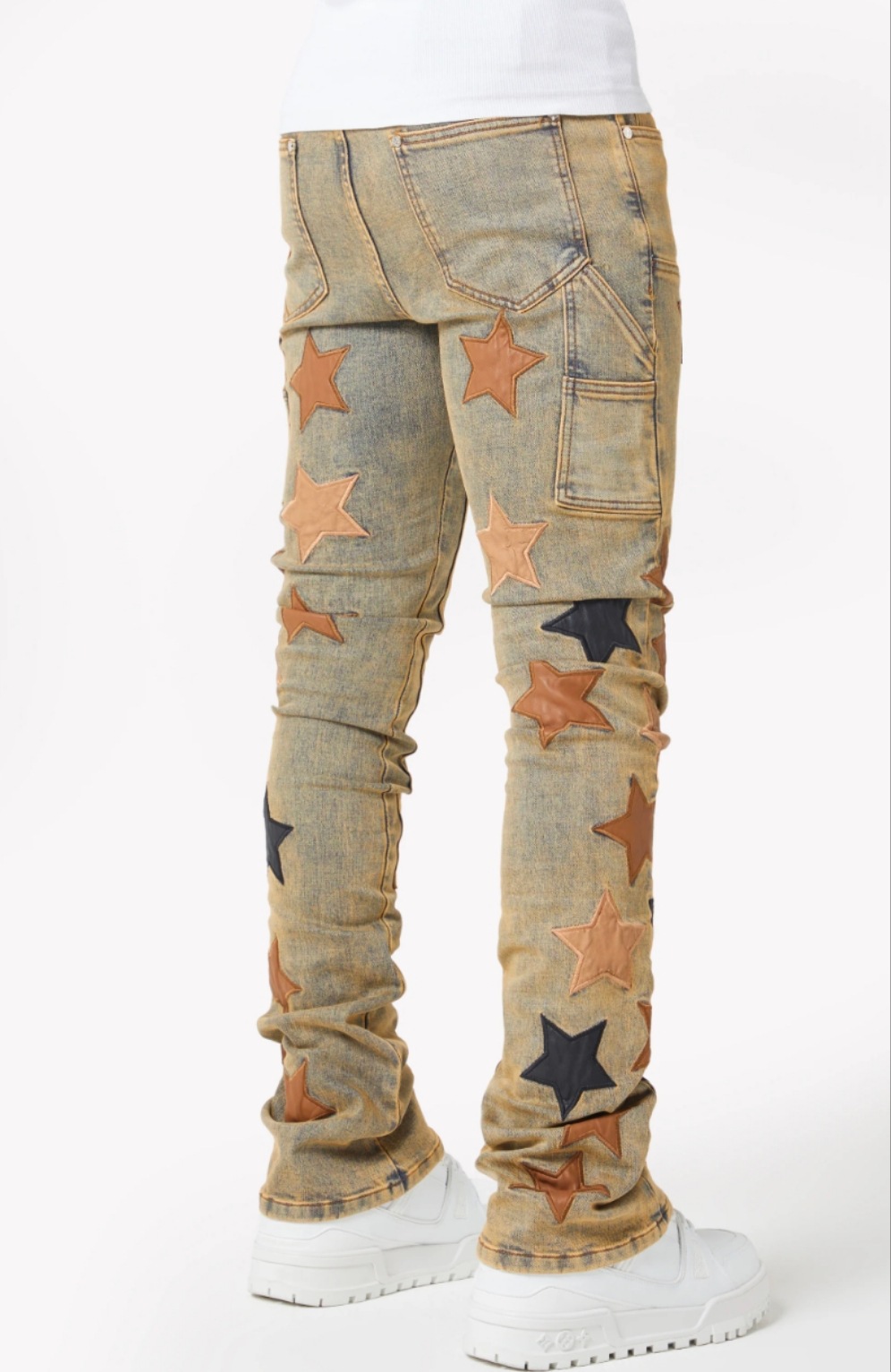 Cartier Men's fashion ins retro color slim fit embroidered PU star miscellaneous jeans