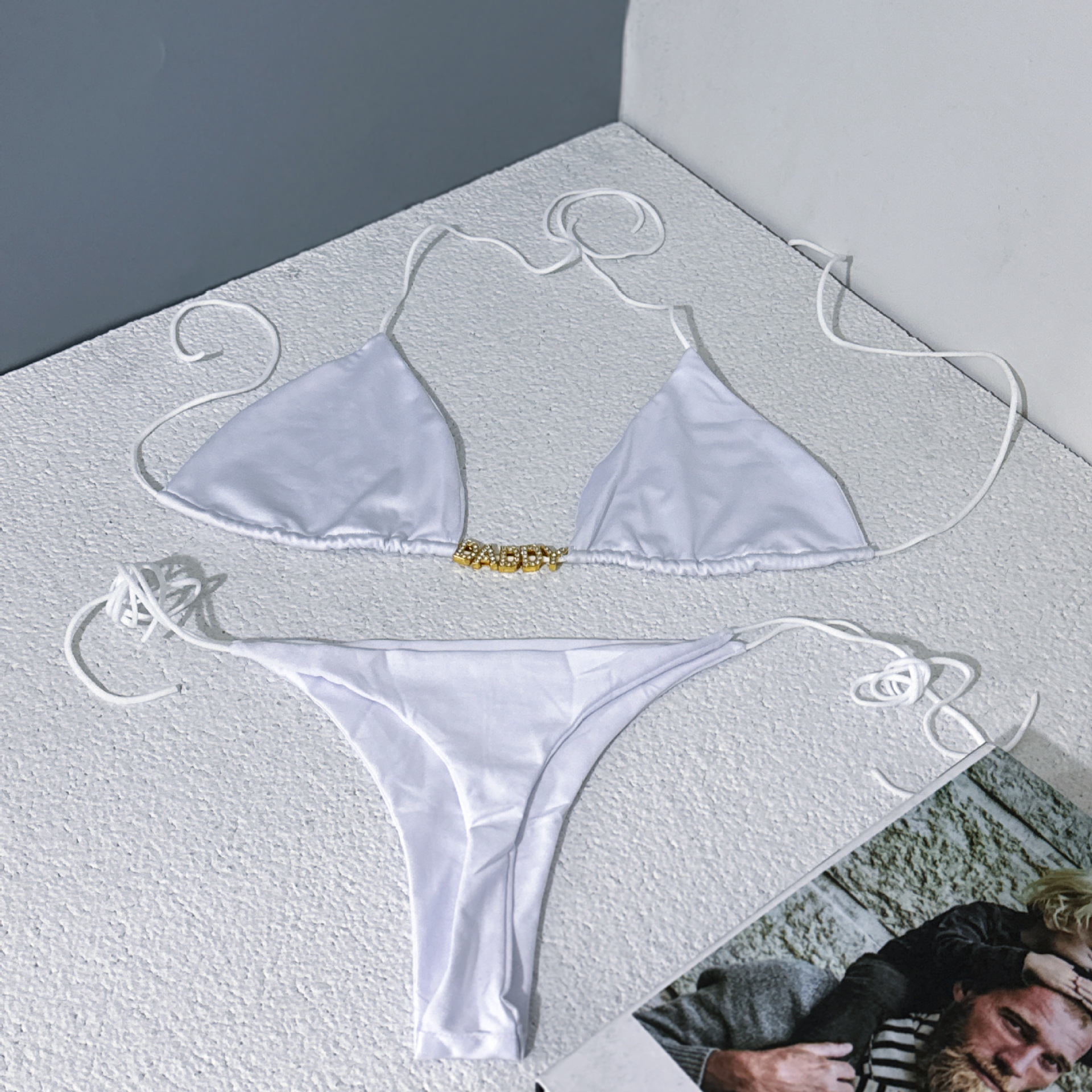 Custom Cross-border DIY Lace Transparent Underwear Sexy T Pants Suit Rhinestone Letters Full Lace Thong