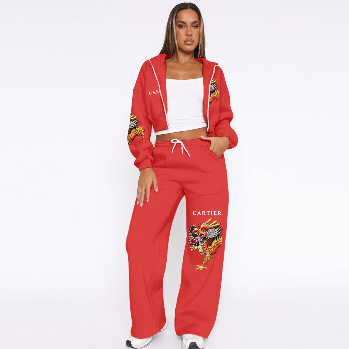 This women's tracksuit is crafted from soft fleece fabric for warmth without bulk, making it an ideal choice for fall, winter, or early spring. The cropped hoodie features a drawstring hood and a stylish, slim fit, perfect with high-waisted pants featuring an elastic waistband and drawstring for an adjustable fit. This seamless blend of comfort and style makes it the perfect choice for casual wear, activewear, or everyday casual wear.