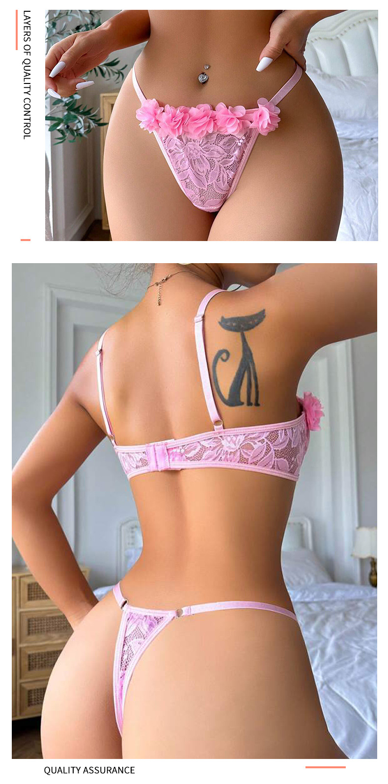 Sweet and charming lace see-through fashion and romantic underwear, women's vintage bra set, personalized three-dimensional flowers