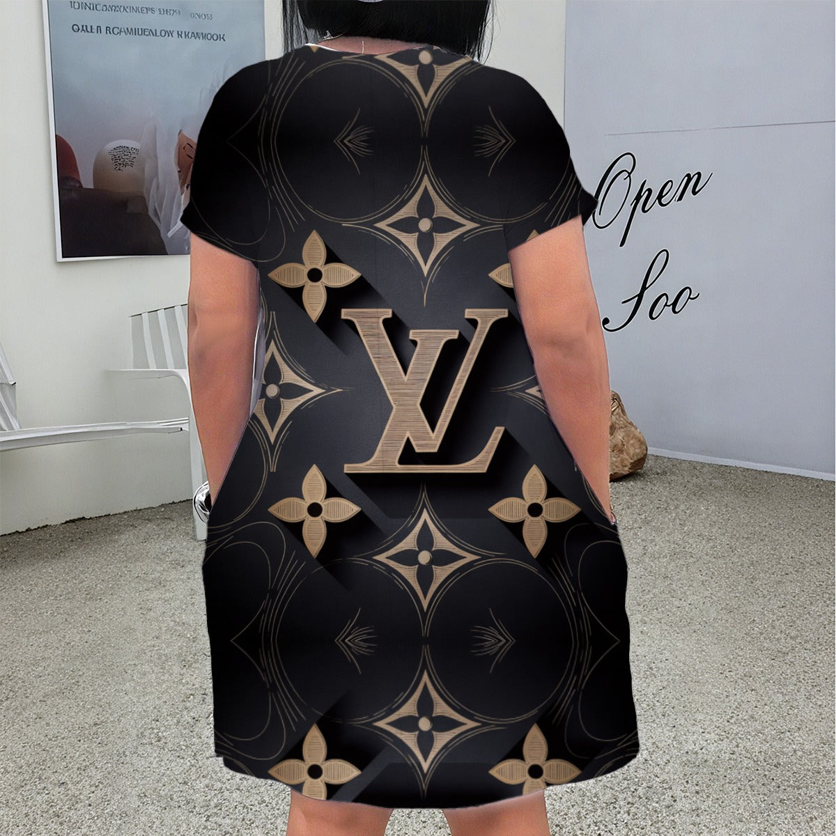 This women's V-neck dress is made from a cotton-like fabric that combines the softness and breathability of synthetic fabrics with the easy-care properties of synthetic fabrics. The classic V-neck design flatters the neckline, and the short sleeves and straight silhouette provide a comfortable and loose fit, making it an ideal choice for casual vacations, daily trips or vacations.