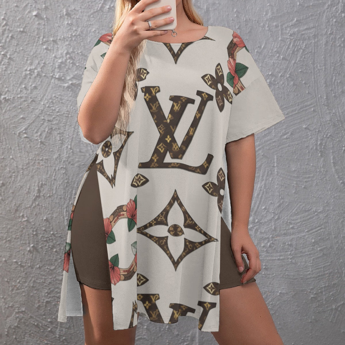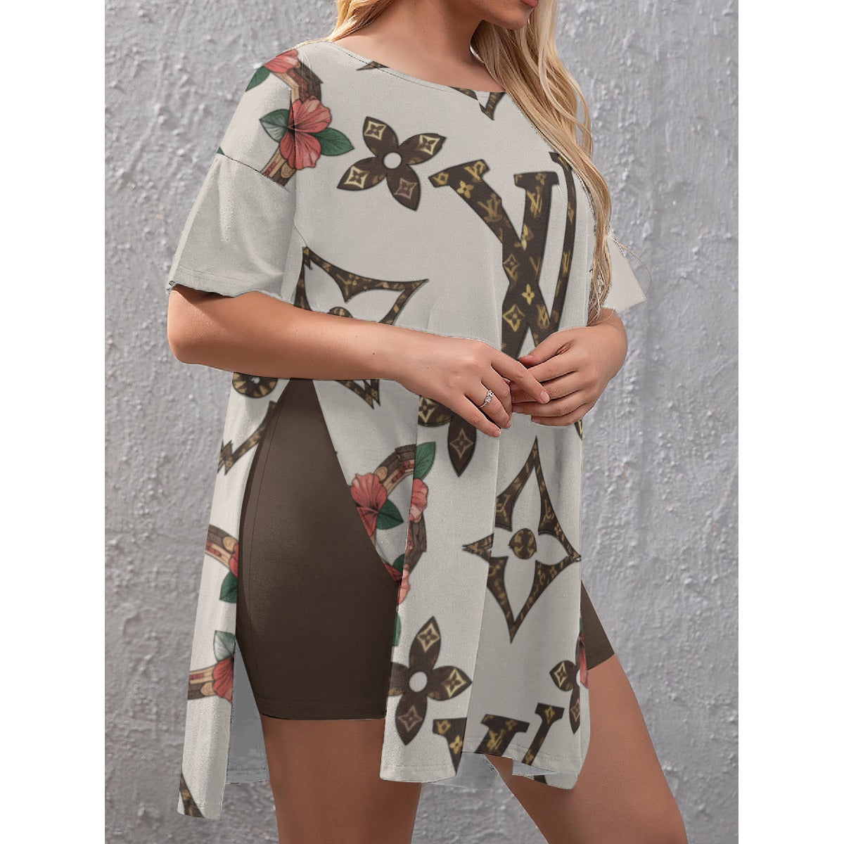 Fashion suit includes oversize T-shirt and shorts; Can be suitable for any body shapes; Nice fabric can provide with all-day ease and comfort