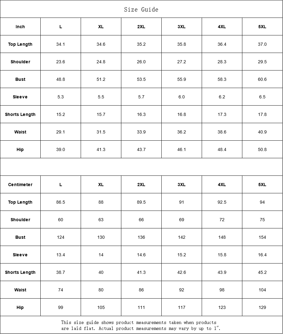 | Shorts Length | 38.7 | 40 | 41.3 | 42.6 | 43.9 | 45.2 |